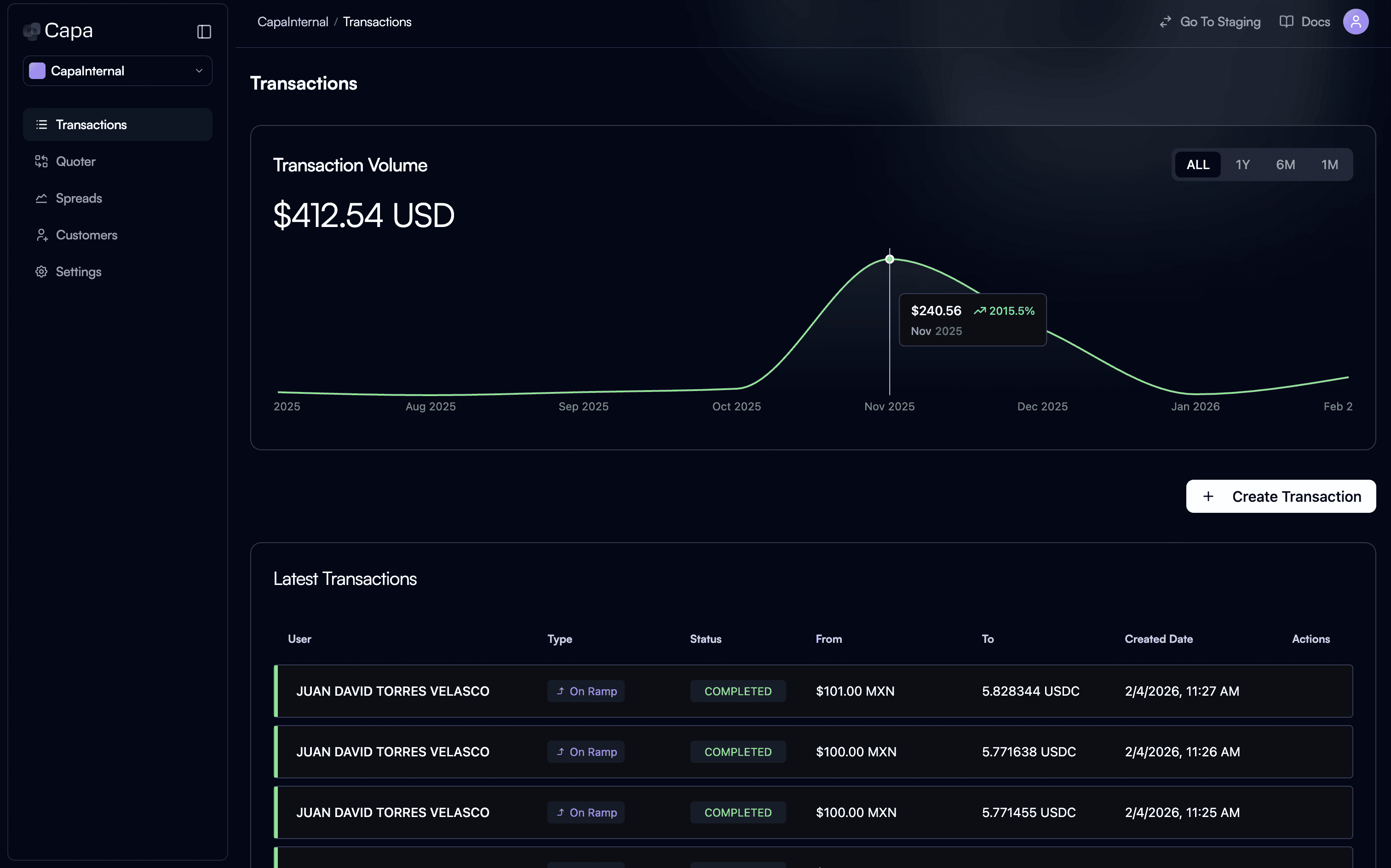 Manage fiat, crypto, and cross border transactions across corridors in one place.